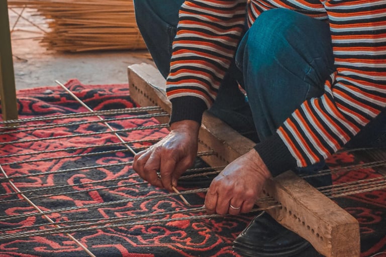 Our skilled artisans meticulously handcraft each rug, using traditional weaving techniques and high-quality materials. Each knot is tied with precision, ensuring a rug that is not only beautiful but durable. The process combines artistry and expert craftsmanship to bring your design to life, making every piece unique.